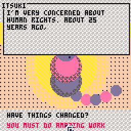 Maybe you played through Kaede's conversation, and got stuck at "What is your vision?" This bug had an interesting vibe, but was not in fact intentional! Lurking behind it was a broken link to a mini-game - I've fixed this now, so I think you should be able to access this little piece of hidden content now. Please let me know if you find anything else that is now broken as a result of my tinkering!